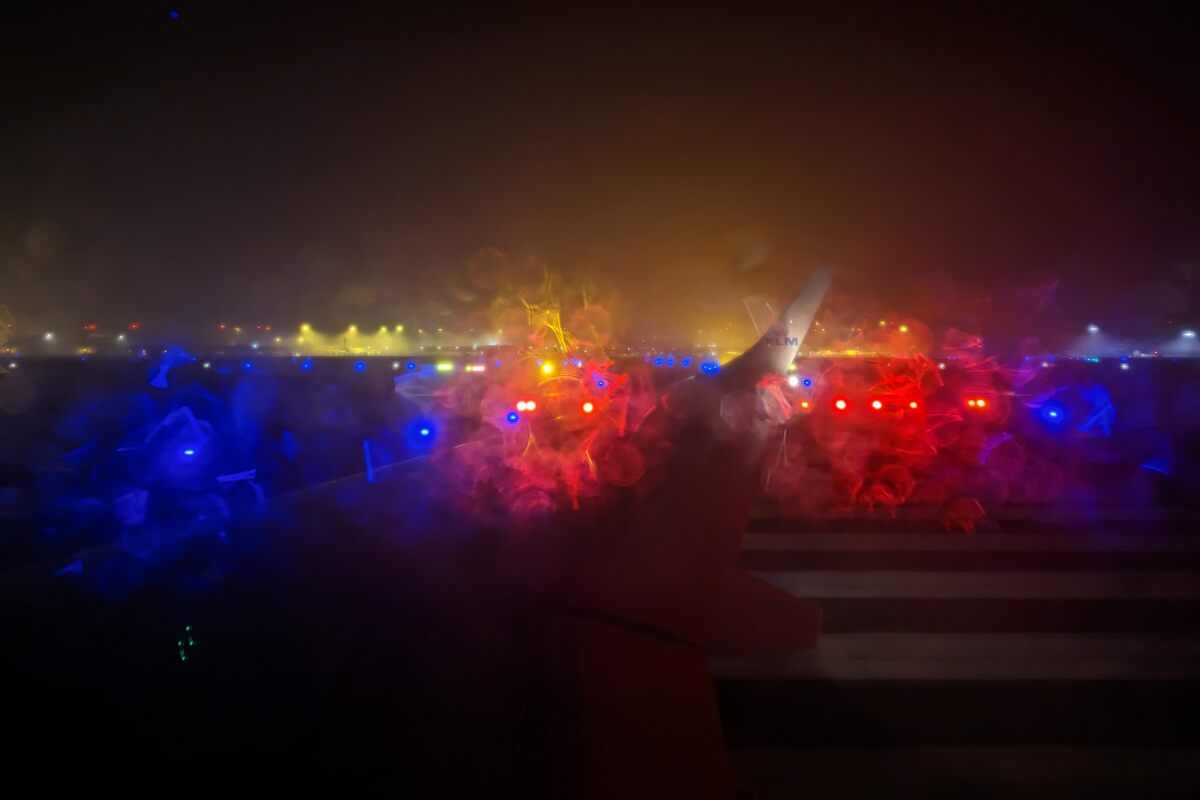 Nous quittons la porte avec un peu d’avance. Puis nous décollons de la piste à 6h06, à cette heure il fait encore nuit.